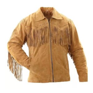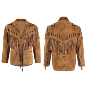 American Native Western Cowboy Suede Leather Western Jacket With Fringes & Beads