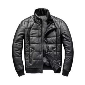 Men’s Leather Puffer Jacket Genuine Sheep Skin Bubble Leather Jacket