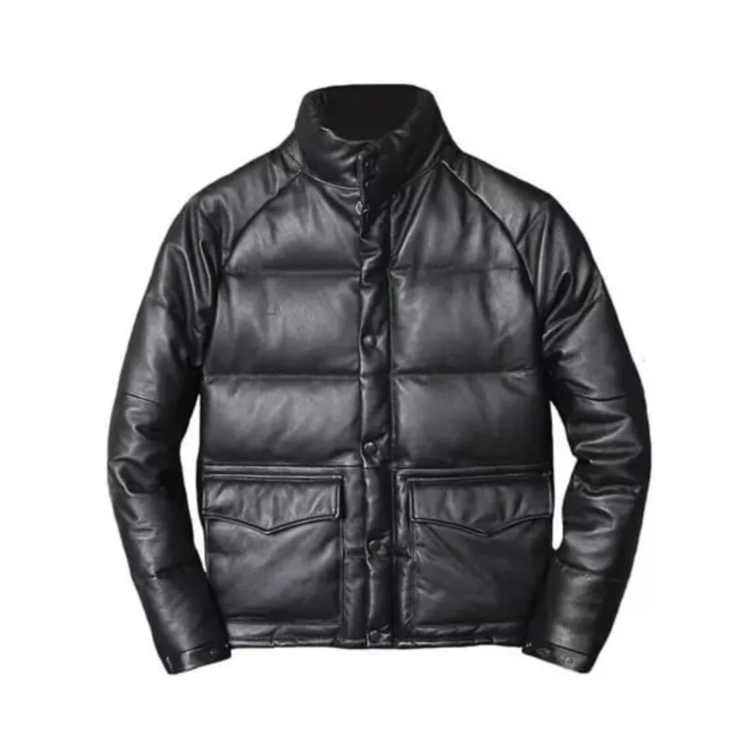 Men’s Leather Puffer Jacket Genuine Sheep Skin Bubble Leather Jacket