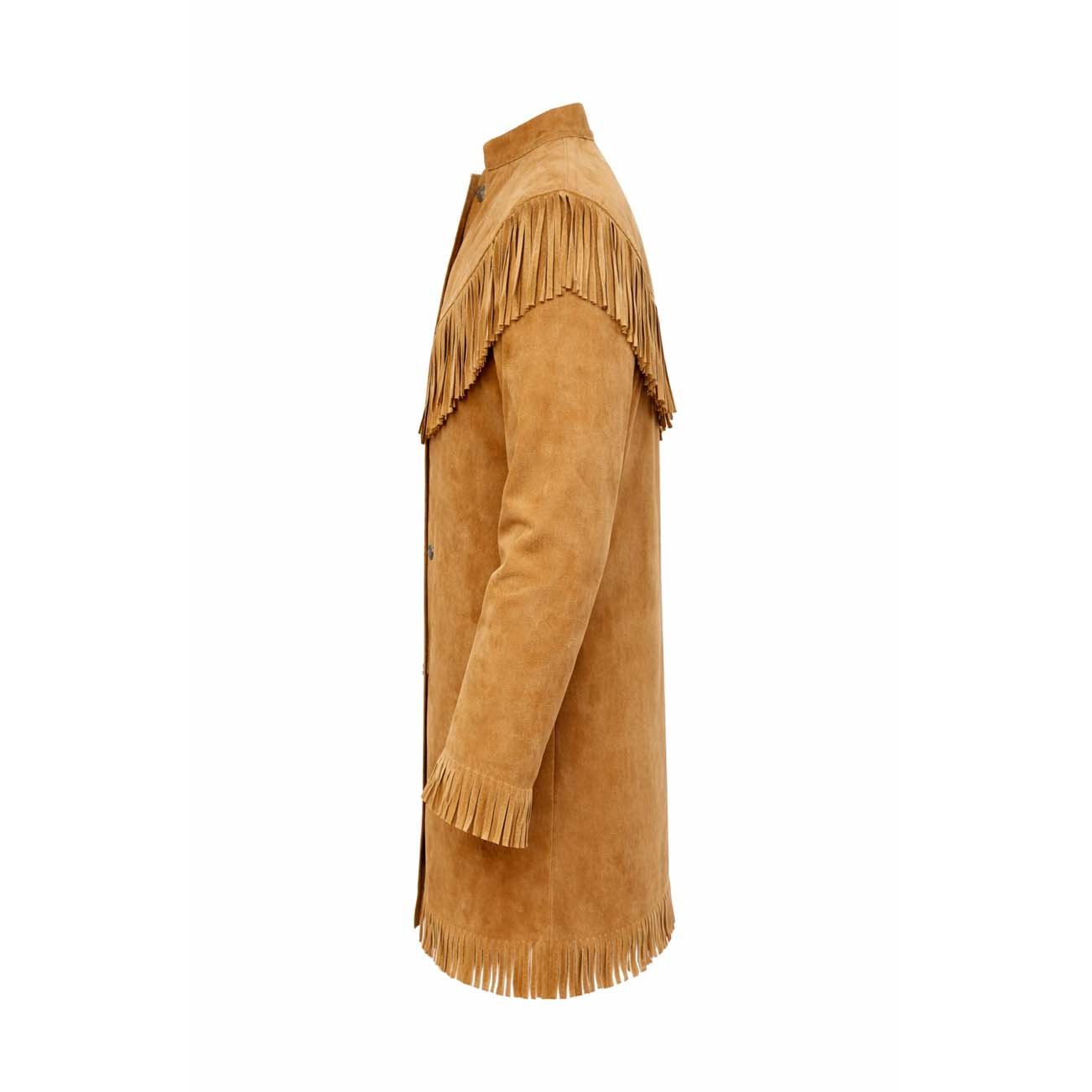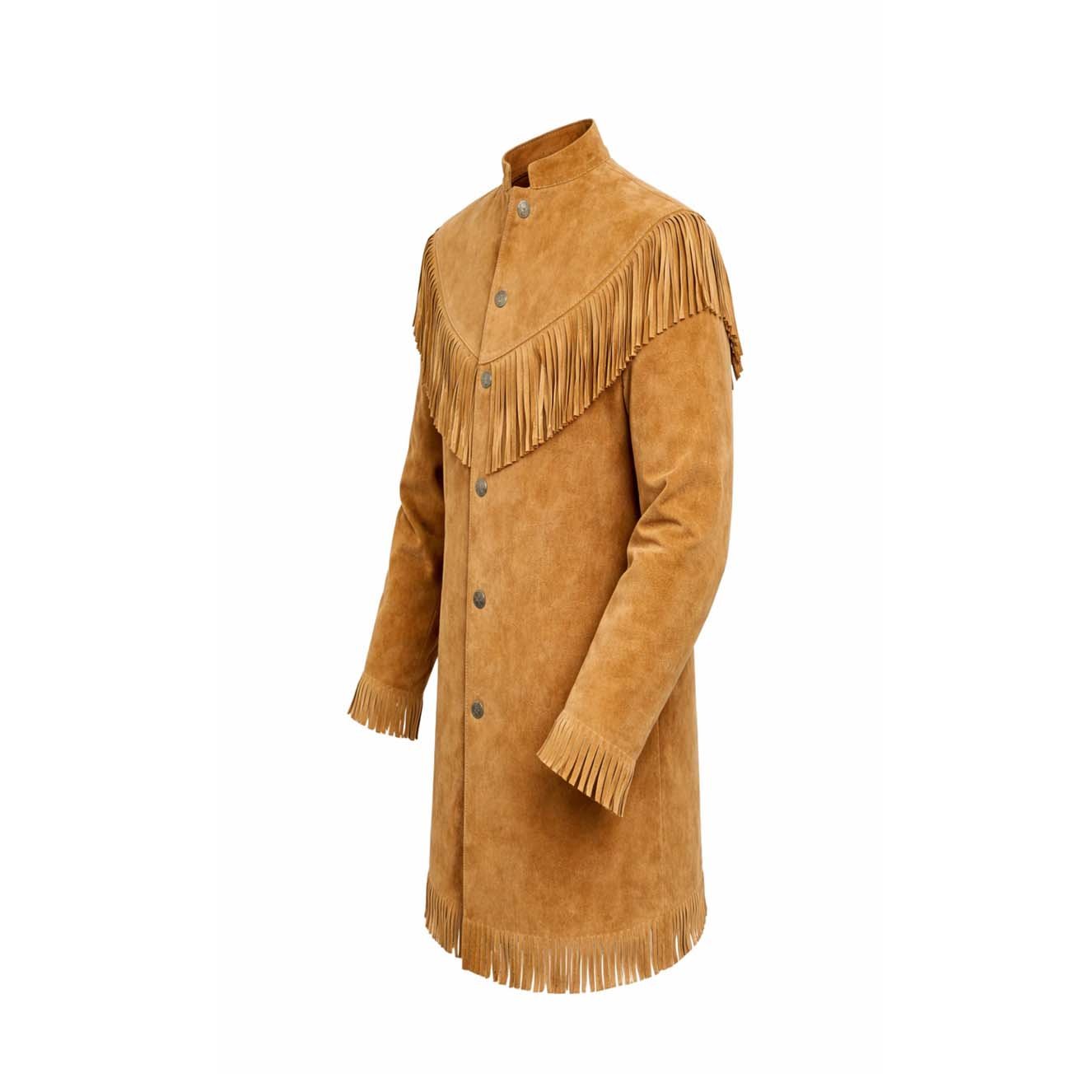 Men’s Traditional Western Wear Cowboy Suede Leather Long coat with fringes