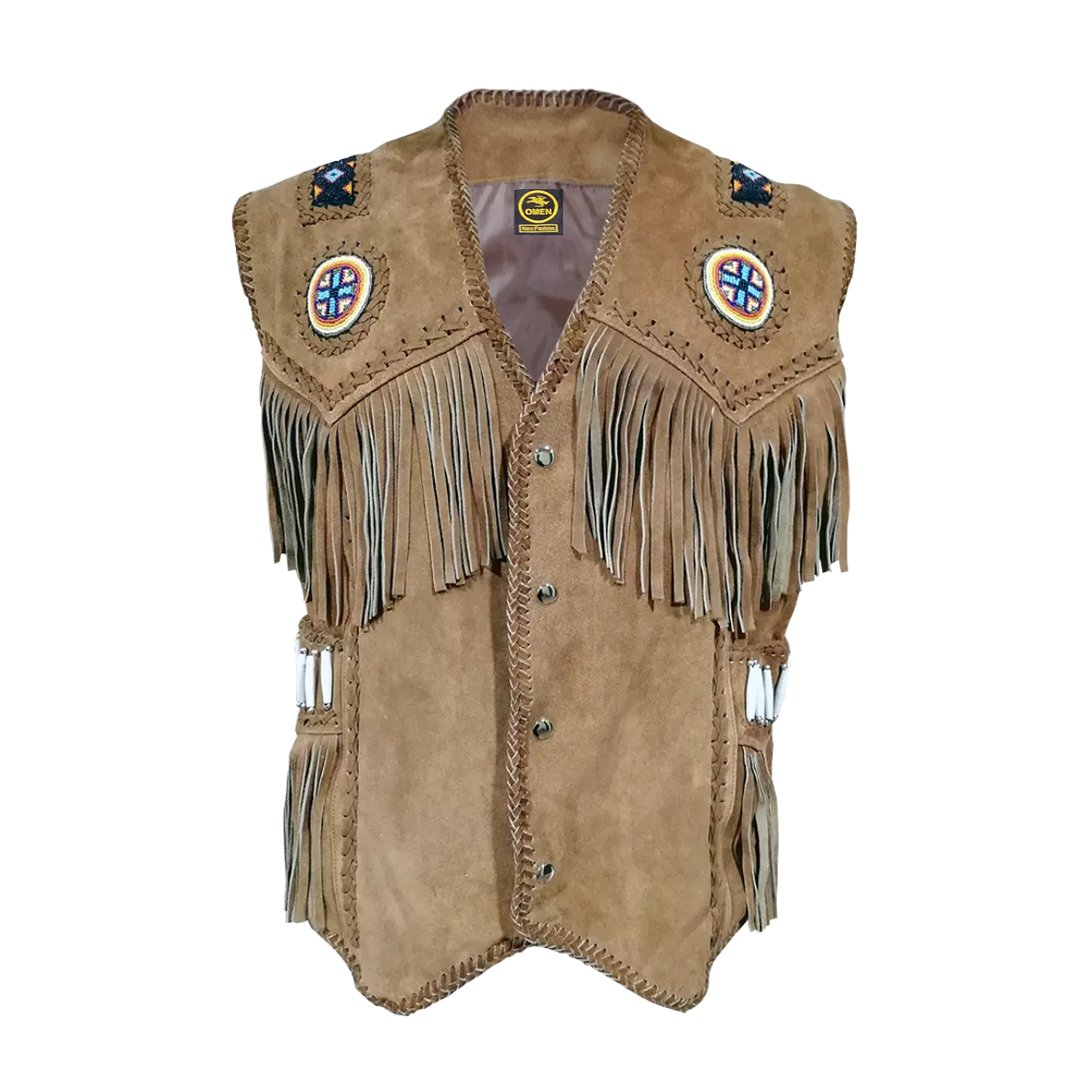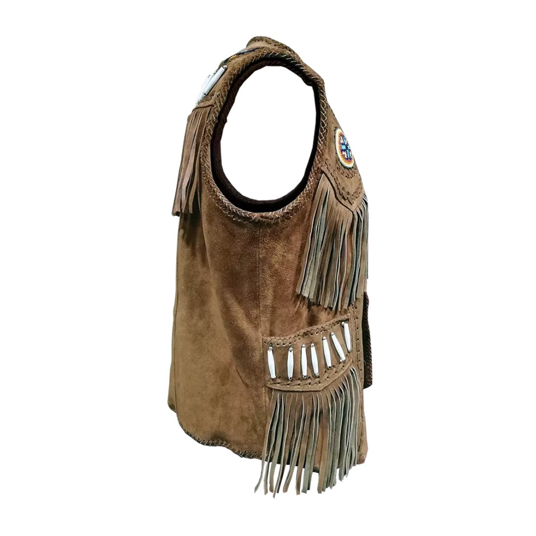 New Men Western Wear Cowboy Suede Vest With Fringes Beads Bones & Braid