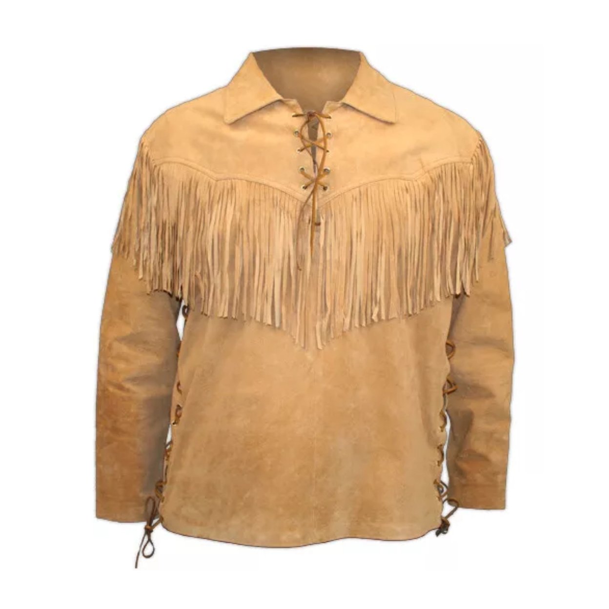 New Mountain Men Suede Leather Shirt with Fringes and Leather Lacing